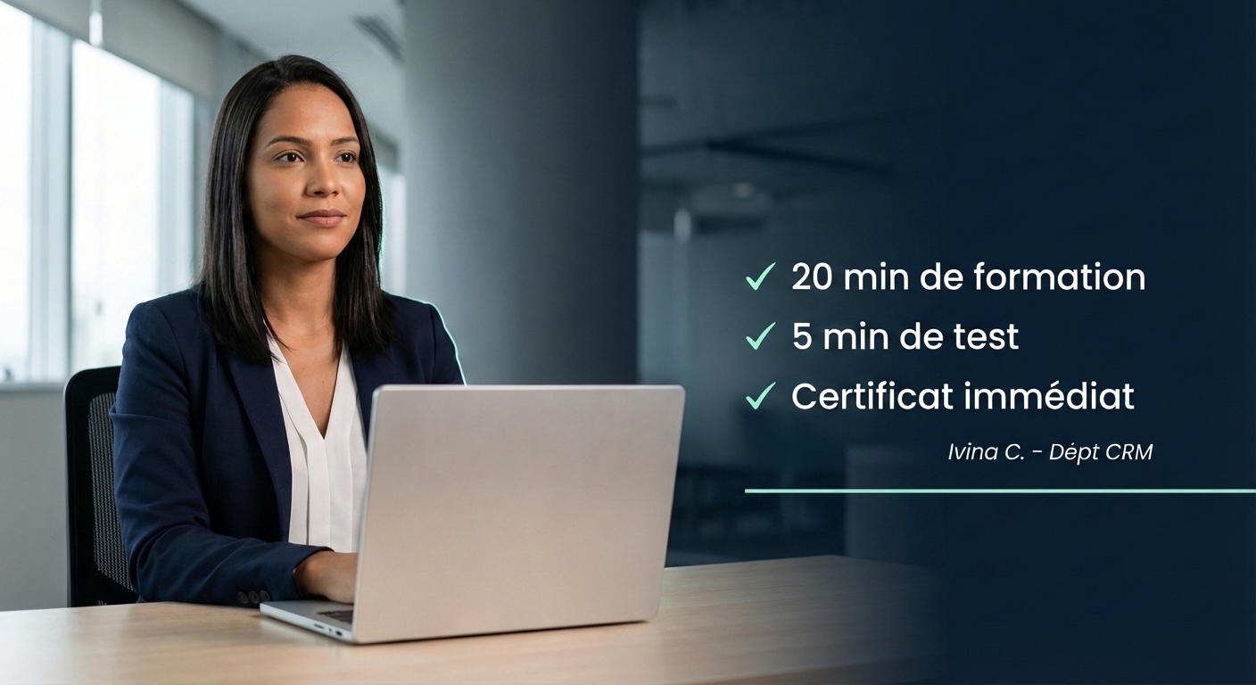 Chaque formation comprend évaluations, relevés d'assiduité et certificats professionnels adaptés aux programmes internes de conformité.